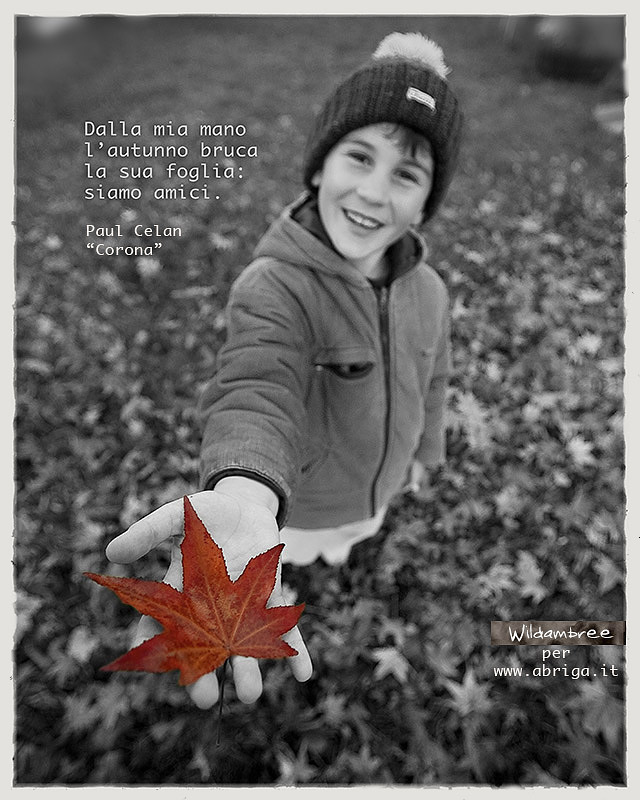 Dalla mia mano l'autunno bruca la sua foglia: siamo amici