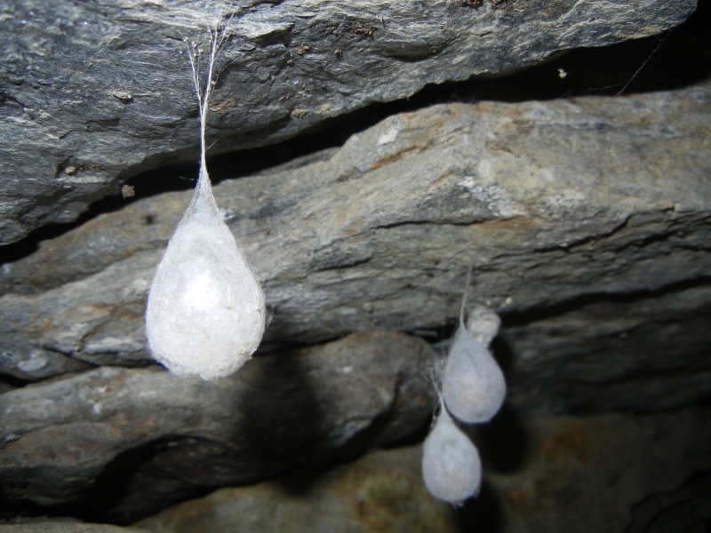 Dovrebbero essere dei bozzoli di un ragno. Prova a cercare su Google il ragno Meta menardi e prova a vedere se ti corrisponde. http://digilander.iol.it/enrlana/meme.htm i pet de luf per quello che conosco io sono le vescie (Funghi)
