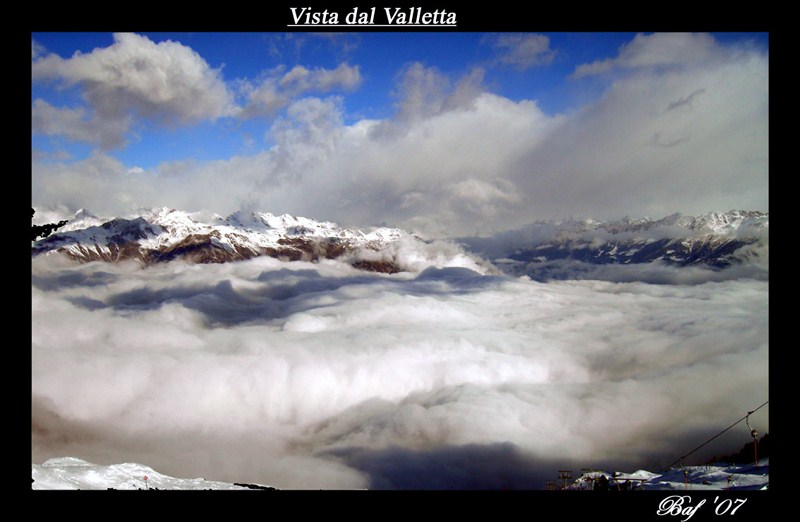 vista dal valletta con nubi immagine scattata marzo 2007 da sgancio sciovia valletta macchina Premier ds-8330 autore io se l'argomento interessa riaggiungerò altre foto, per il momento solo 1 come da regolamento forum ciao a tutti. PS un grosso grazie all'amministratore del sito per aver celermente ripristinato il forum ed un grosso v..............o all'hacker che ha interrotto una delle poche poche cose carine nate dall'iniziativa di pochi per far conoscere il nostro bel paese....... |