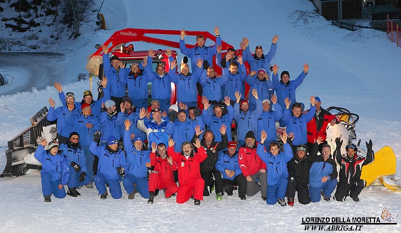 Si sono ritrovati insieme, dopo una normale giornata di lavoro alla partenza della funivia della Magnolta. C'erano quasi tutti gli uomini quotidianamente impegnati nell’offrire a residenti e ospiti della località orobica, degli impianti di risalita del comprensorio Aprica e Corteno Golgi, una skiarea in perfette condizioni. Con loro c’erano buona parte dei dirigenti di Sita, Siba, Baradello 2000 e Campetti, le società che gestiscono un comprensorio che vanta oltre 50 chilometri di piste, l’80% delle quali innevabili artificialmente. Le piste sono suddivise in 7 azzurre, 10 rosse e 5 nere più 6 collegamenti. Il comprensorio, composto di 4 aree integrate, è tutto interamente collegato sia verso il fondovalle che in quota. Dotato di un totale di 18 impianti di risalita, ha una portata oraria di 24.000 persone. Il senso di questo ritrovo è stato quello di salutare, dopo più di un mese di lavoro, l’inizio di questo nuovo inverno, per cui tutti sono già impegnati e che si protrarrà almeno per altri tre mesi.