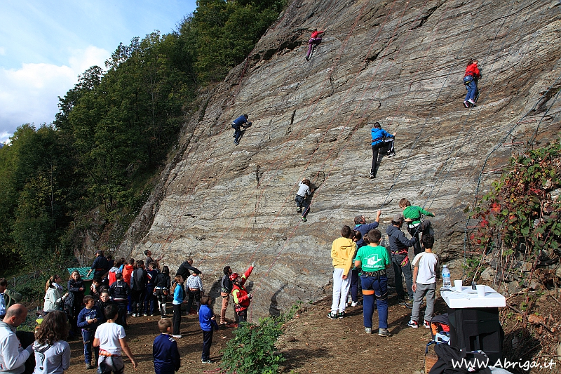 Inaugurata oggi, sabato 13 ottobre, la nuova palestra di arrampicata dei "Castelli". Dopo un lungo lavoro di pulitura e messa in sicurezza della parete da parte dei volontari del Soccorso Alpino di Aprica, della Compagnia del Martello e della Sezione del CAI di Aprica da oggi la palestra è aperta e utilizzabile. Durante la mattinata i ragazzi delle classi 5^ della scuola primaria e 1^ - 2^ -3^ della scuola secondaria di primo grado di Aprica hanno provato le 10 nuove vie tracciate.