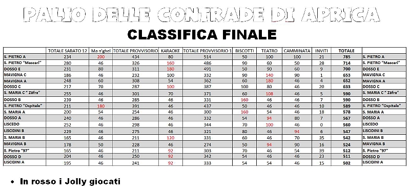 In rosso i Jolly giocati