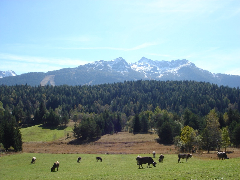 La foto è di qualche giorno fa ma il tempo continua ad essere clemente e le mucche si godono ancora un po' di pascolo