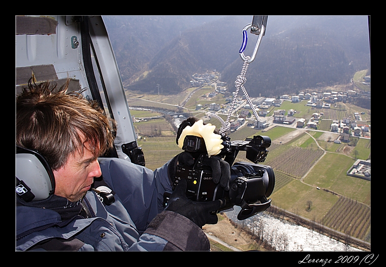 Si notano i potenti mezzi per stabilizzare la videocamera