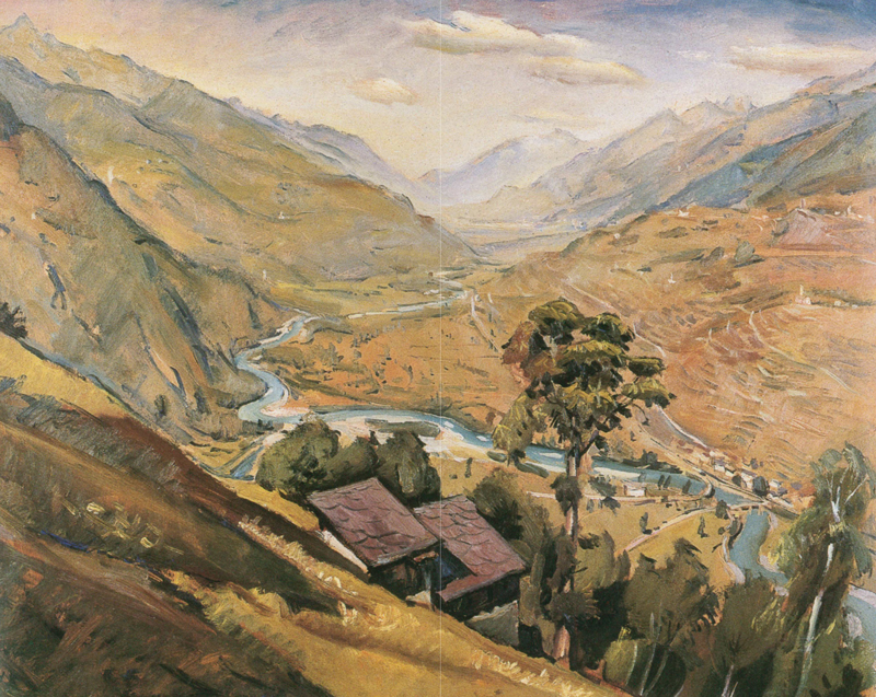 Veduta della Valtellina dal Belvedere di Aprica (1949) olio su tavola, cm 85,5 x 109 |